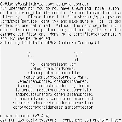 - 애뮬레이터 드로저 어플 오픈 후