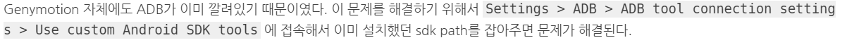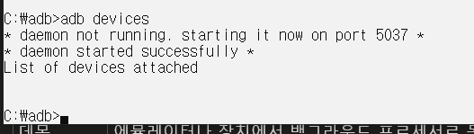 - 만약 여러 장치 연결할 경우 -s 사용 : adb -s 장치이름 명령어