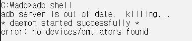 - -d : USB장치 / -e : 에뮬레이터 장치