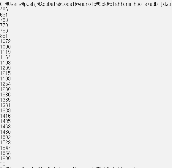 - 명령어 일단 수행 후 취소한 후 디버깅 대상 어플리케이션 실행 후 다시 명령어 입력