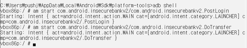 - am start [앱이 설치된 주소]/[호출하고 싶은 패키지 주소]
