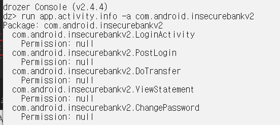 - 드로저로 우선 액티비티 리스트 확인, 권한 없음 확인