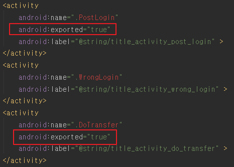 - false일 경우 : 액티비티는 같은 앱 혹은 같은 유저 ID를 가진 앱의 컴포넌트만 불러올 수 있음.