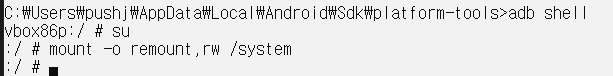 - /system 디렉터리에 존재하는 파일을 수정하려면 only-read 상태로 마운트 되기 때문에 시스템 파일을 수정할 수 없음 -> 다시 마운트 필요