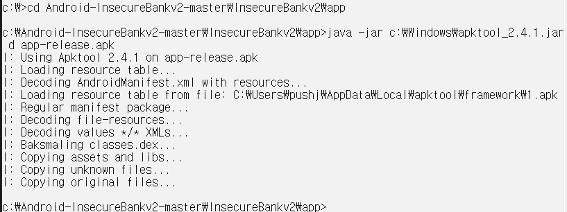 - C:\Android-InsecureBankv2-master\InsecureBankv2\app\app-release\smali\com\android\insecurebankv2