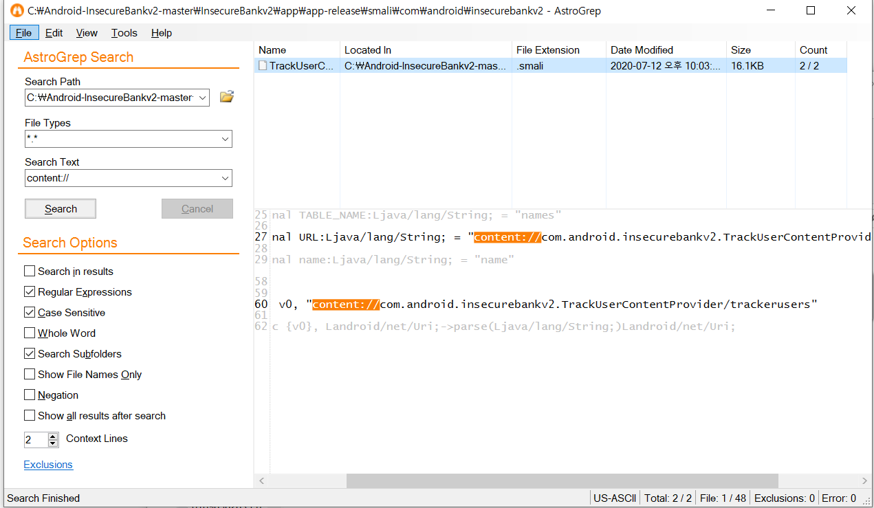 - astrogrep을 이용하여 특정 폴더의 파일 내용 중 입력한 단어가 포함된 파일 확인