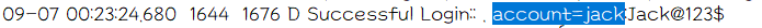 - account= : 로그인 한 계정 정보가 평문으로 노출되는 것을 확인 가능