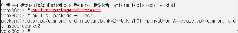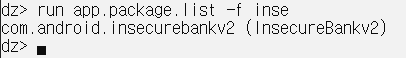 - 앱이 설치된 위치를 파악하기 위해 앱의 목록 출력 (pm list)