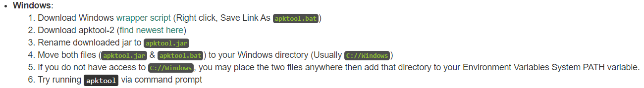- https://ibotpeaches.github.io/Apktool/install/