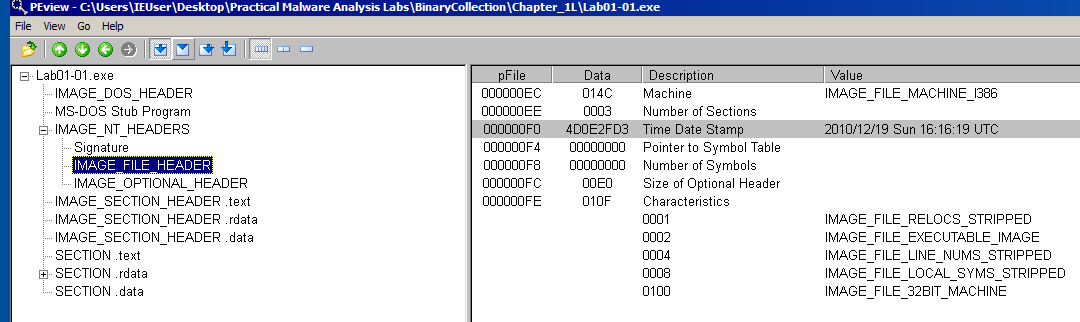 기초 정적 분석 : 실행하지 않고 간략하게 분석하는 것