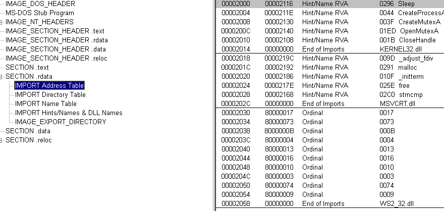Size of Raw Data(원래 데이터 크기)보다 Virtual size(가상크기)가 크다면 다른 파일을 올리기 위한 것으로 의심 가능