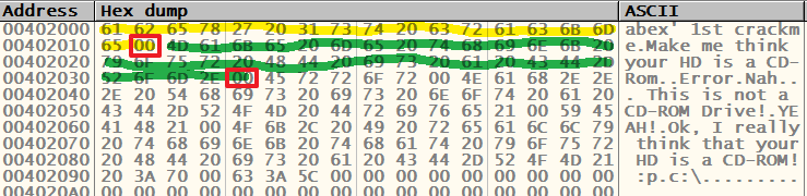 메모리영역에서 hex 데이터는 00(NULL)이 나오기 전까지 연속적으로 읽으면 됨
