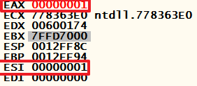 GetDriveTypeA()함수에 브레이크포인트 걸고 스텝오버 했을 때 레지스터 값 확인