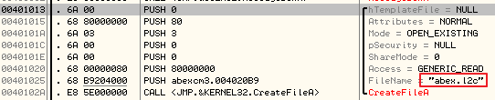 프로그램 주석 부분을 보면 filename은 abex.l2c인 것을 확인 가능