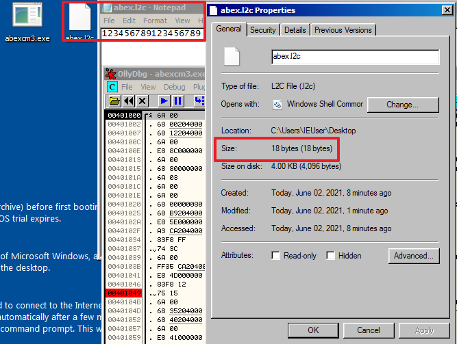 abex.12c 크기를 18바이트로 해서 다시 실행한다면 cmp eax, 12 명령어에 의해 참이 됨