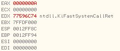 EAX 값에 십진수 10이 들어간 것을 확인 가능