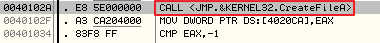 CreateFileA 명령어가 있는 것을 보니 여기가 시작 지점